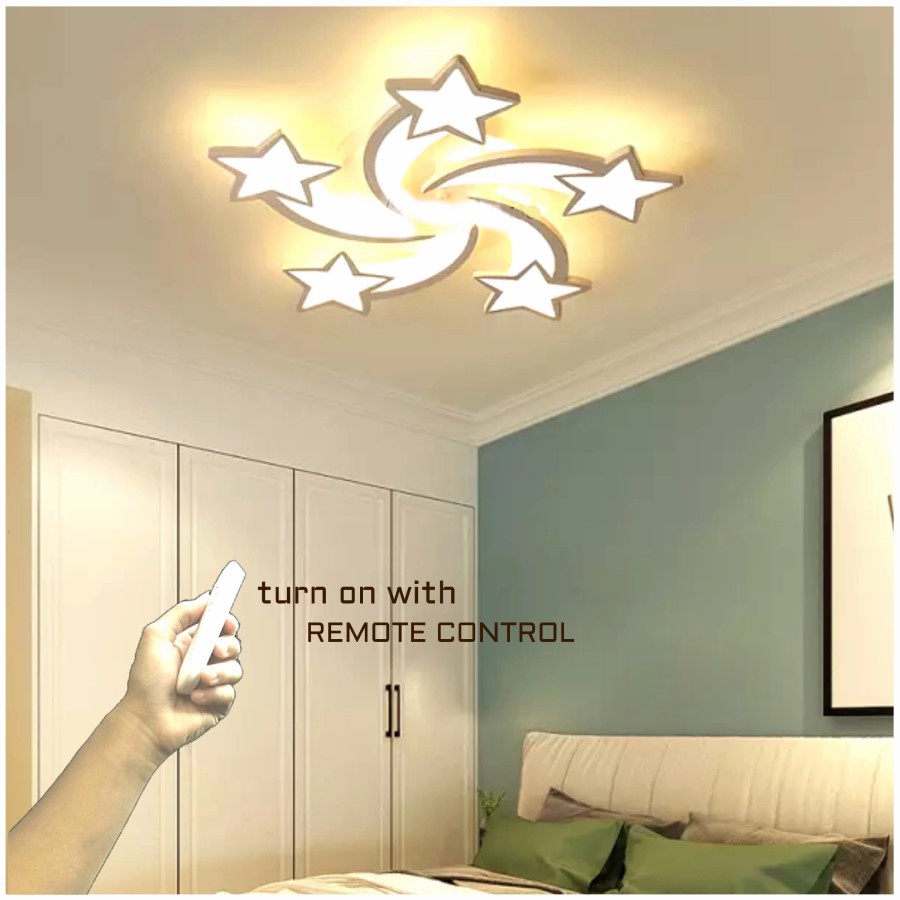Jual Lampu Tempel Hias Plafon Desain Unik Bentuk Bintang Minimalis Led Remote Control Bisa Nyala 3 Macam Variasi Sinar Cahaya Putih Kuning Mix Ceiling Lighting Interior Dekorasi Rumah Ruang Tamu Keluarga Kamar